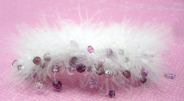 Shown above is Becky in a range of purples, lilacs and pinks on silvertone wire with snow white marabou feathers.