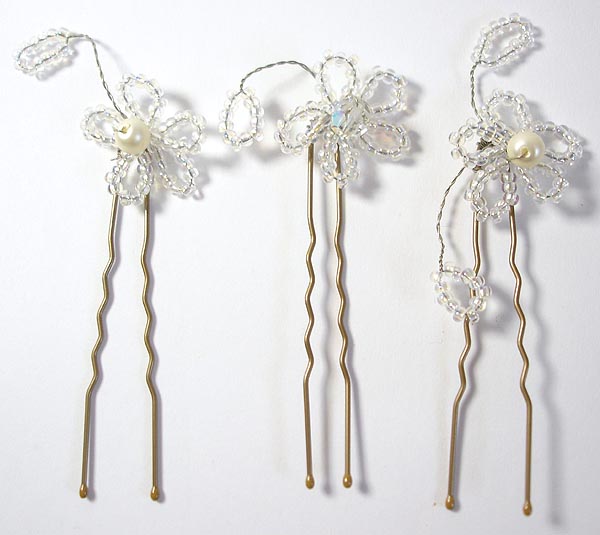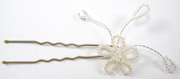 Above is Cleo Hairgrip in cream rocailles/seed bead with