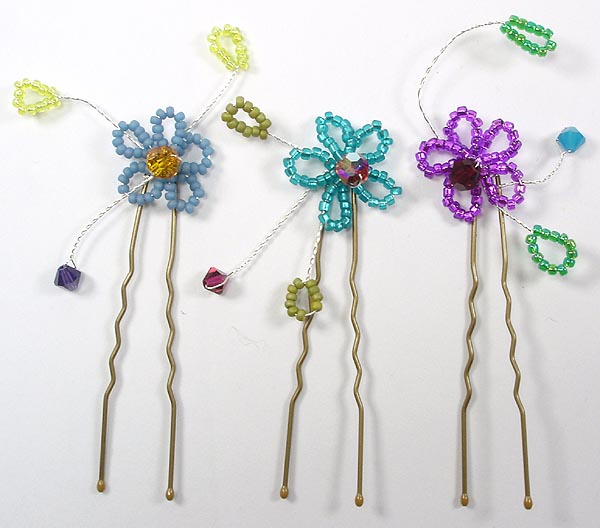 Above is Cleo Hairgrip in range of various colour seed beads and Swarovski crystal