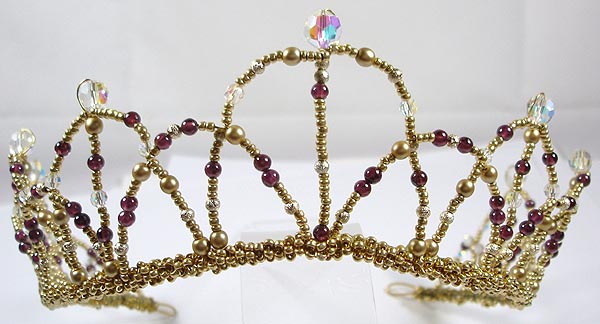 Shown Above Is Elizabeth Tiara in Goldtone, Garnet Semi Precious Stone and Clear/Aurora Borealis Swarovski Crystal