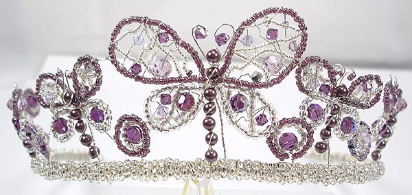 butterflies sit amidst flowers; expect variations as each tiara is made by hand