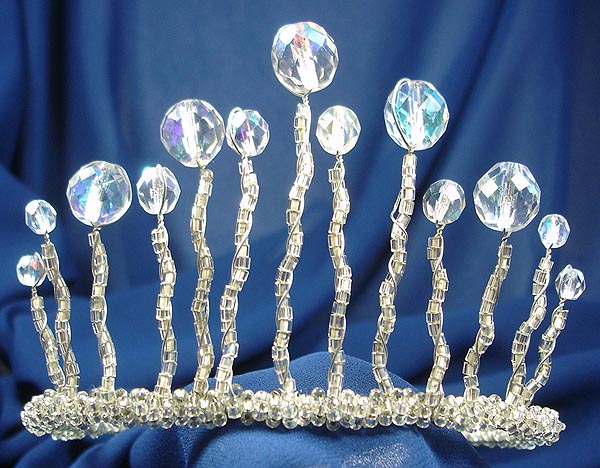 Marianne Tiara - can be made to your requirements - looks great with Swarovski pearls too - graduated row of crystal beads on rocailles wirework stems on a comfortable handmade beaded base; expect variations as each tiara is made by hand with care.