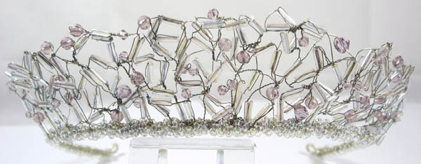 Sarah Tiara- ethereal, delicate appearance - as always, made on a comfortable handmade flexible base, delicate tendrils of lilnked twisted wire embellished with sparkles of Swarovski crystal, glass bugle beads and rocailles/seed beads - I can work with you to make this tiara in your colour requirements